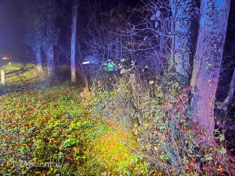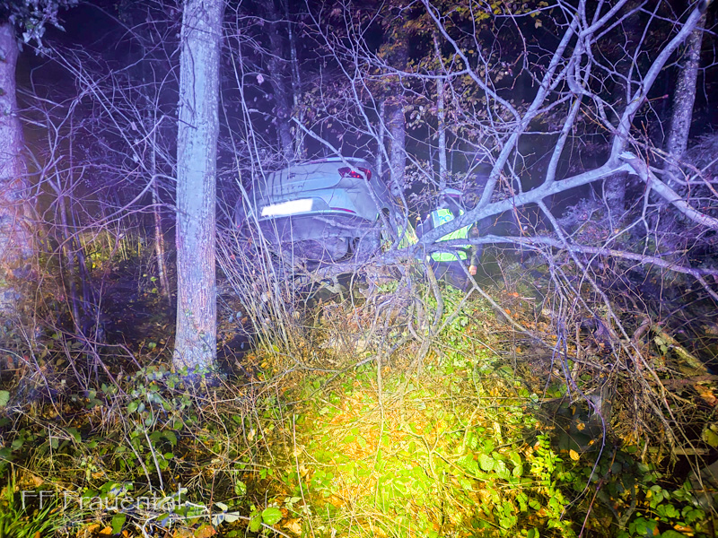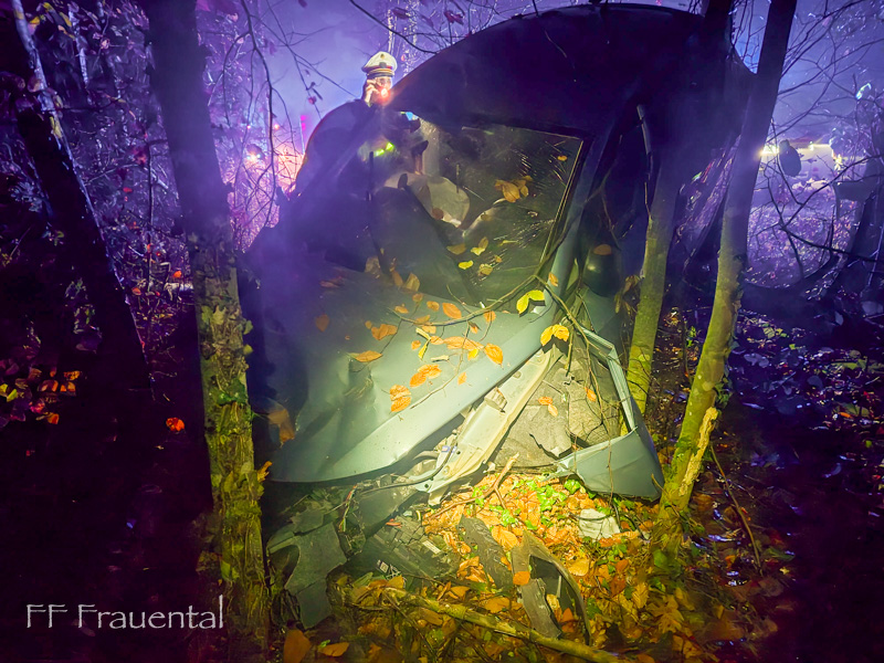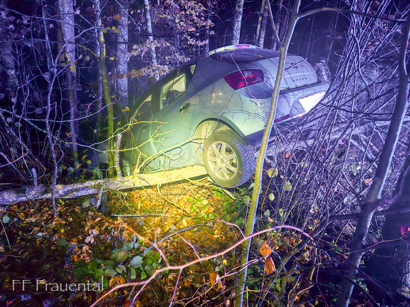 Am Abend des 14.11.2025 kam ein PKW in Fahrtrichtung Wildbach von Frauental kommend von der Hinterleitenstraße ab und kam im Wald zum stehen.