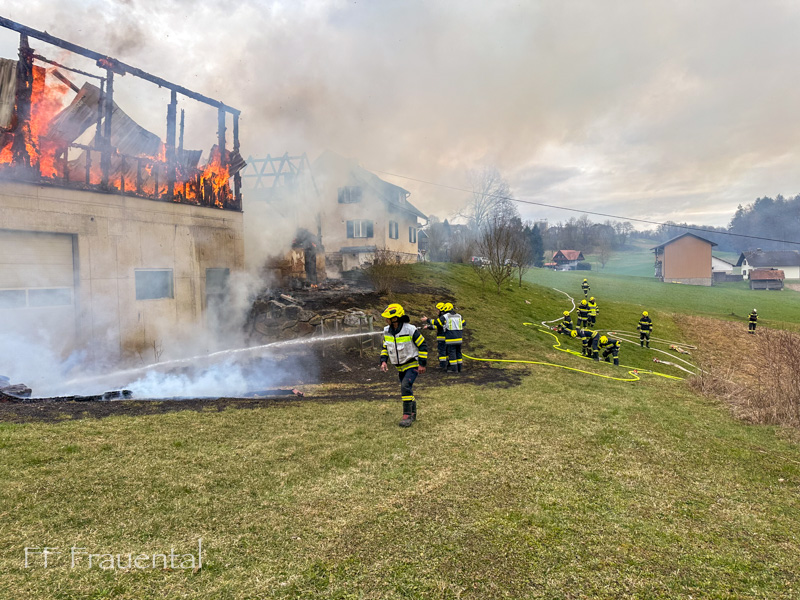 Die Feuerwehr Frauental war mit der Löschwasserversorgung mittels TLF, Lösch- und Kühlarbeiten sowie der Wasserversorgung mittels Tragkraftspritzen von einem etwa 150 m entfernten Bach über etwa 20 Höhenmeter zusammen mit Kameraden der FF Groß St. Florian und Tanzlsdorf betraut.
