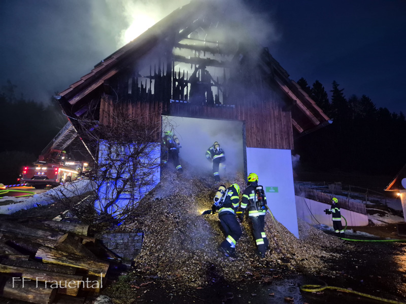 Um etwa 0530 wurden die Feuerwehr Frauental zu einem Brandeinsatz ins benachbarte Löschgebiet Bad Gams alarmiert: Ein Hackgutlager war in Brand geraten.