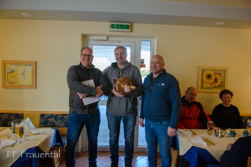 Bei einem köstlichen Bauernschmaus im Gasthaus Stegtoni wurde die Siegerehrung und Nachbesprechung des Tages durchgeführt. Bei der Übernahme des Wanderpokals erklärte HBI Robert Köppel sinngemäß: "Es war ein toller Tag im sportlichen Wettkampf. Er zeigt aber eimmal mehr, dass die Frauentaler Feuerwehren sich wunderbar gegenseitig ergänzen, toll zusammen Arbeiten und dabei viel Spaß haben."