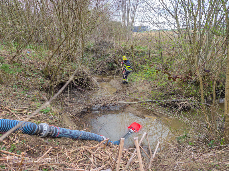 Da der Bach nur wenig Wasser führte, wurde zusätzlich ein Pendelverkehr mit Tanklöschfahrzeugen zur Sicherstellung der Löschwasserversorgung eingerichtet.
